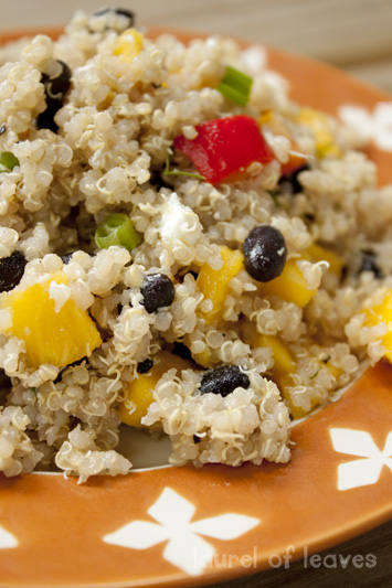 I too am a sucker for black beans, mango and goat cheese; looks delicious! I like to use quinoa to stuff peppers(http://soulicious.net/2012/04/25/rainbow-stuffed-peppers/). I also just made a batch of tabbouli this weekend and substituted quinoa for the traditional wheat bulger. Awesome! I had quinoa leftover and tossed it with red onion, dates, broccoli, and a simple balsamic dressing. Not perfect, but still tasty - and a fun experiment!